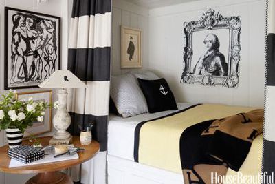 In the bedroom of a 400-square-foot Brooklyn apartment designed by Fitzhugh Karol and Lyndsay Caleo of The Brooklyn Home Company, Ikea's Brimnes bed has drawers underneath, for more storage.