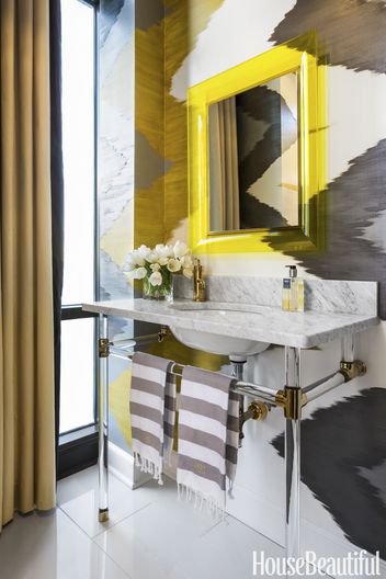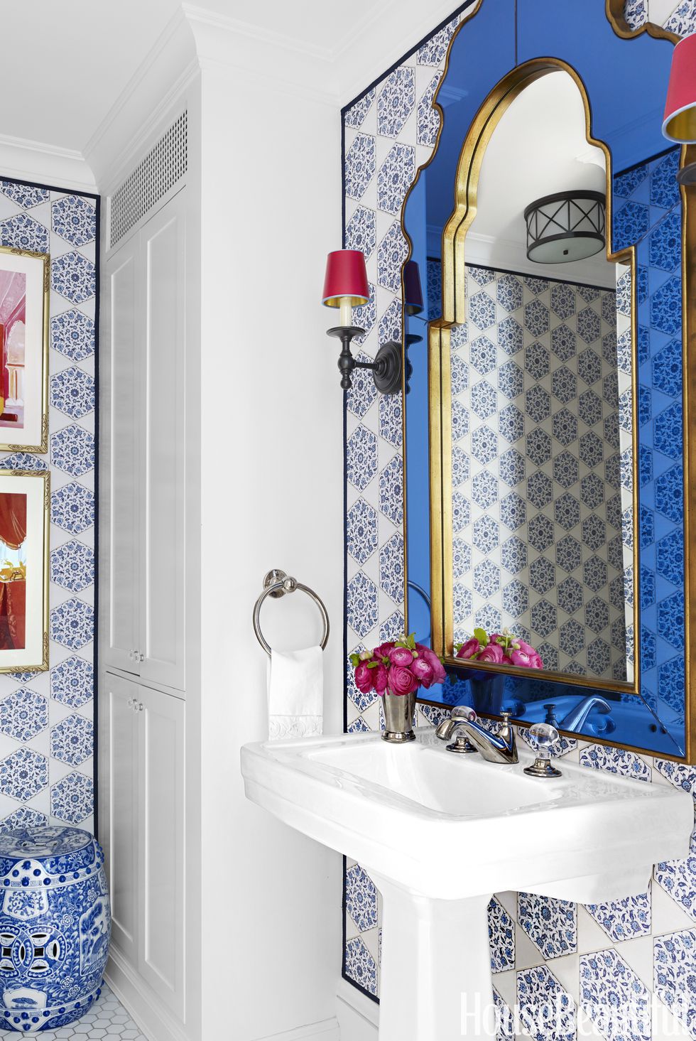 Iksel's Iznik wallpaper lends an Ottoman touch to a Park Avenue space, but the true showstopper is the curvaceous Sapphire mirror by Bunny Williams Home.
