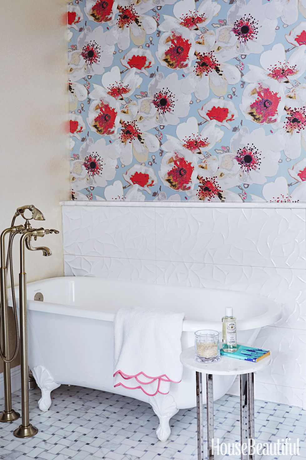 To balance out a girl's youthful bathroom, designer Cheryl Kees Clendenon selected a classic claw-foot tub by Victoria + Albert, perfect for a long soak.