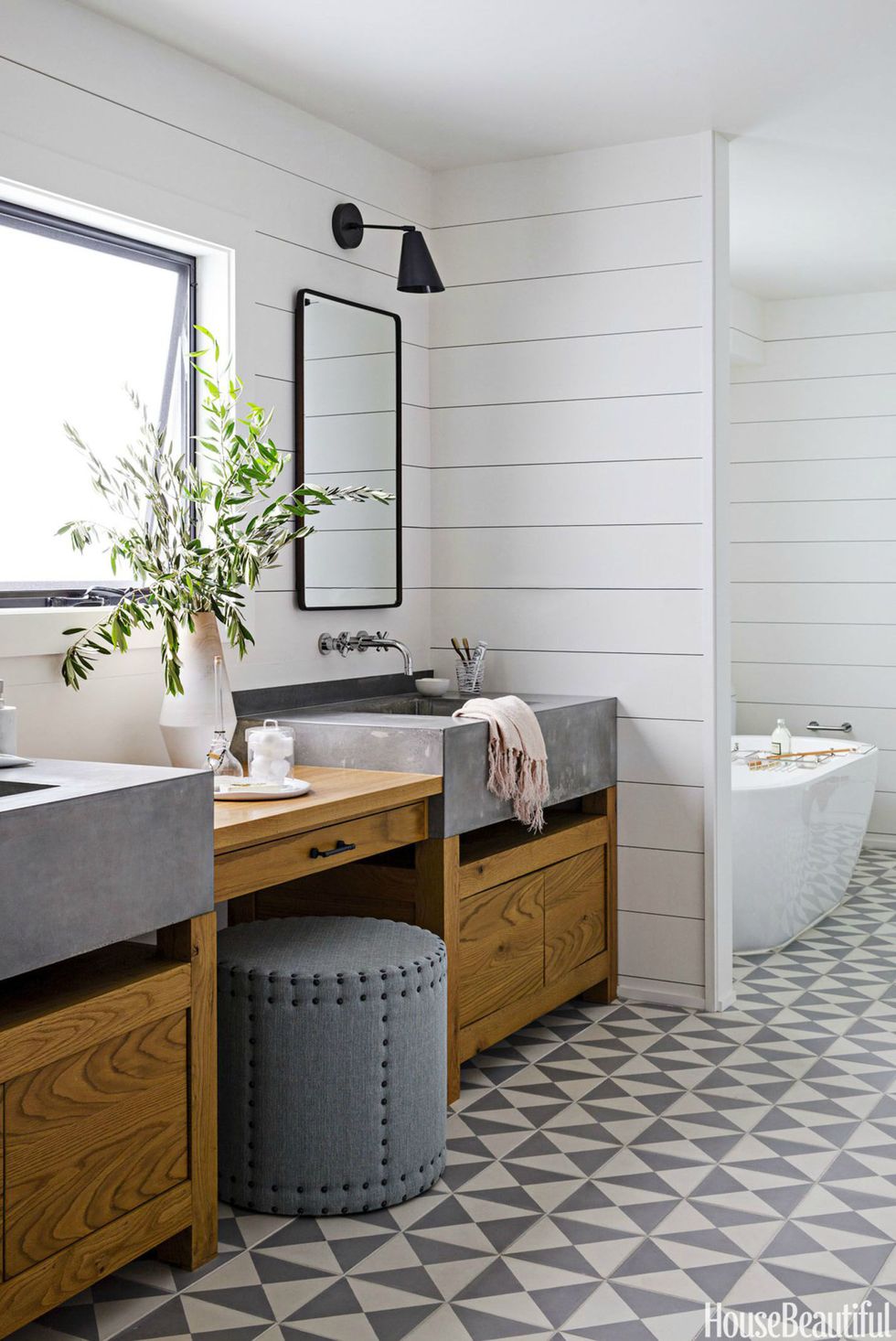 The beach is right outside this house in Marina del Rey, California, but you'd never have known it from the dark and cramped master bath. Designer Daleet Spector reconfigured the space and added large windows to let in more light. "The clients don't like a lot of color, so we worked with different textures instead," she says.