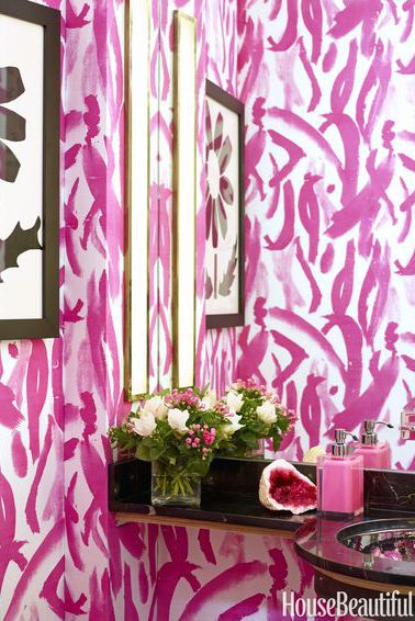 "I wanted the nostalgic look of a black-and-white bathroom," Leslie Klotz says of the space in her Manhattan apartment. "And I used high-gloss paint" — Benjamin Moore's Black — "because it felt sexy." Duravit sink with Rohl fittings.