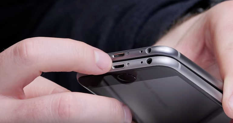 8. Cuts: On this comparison of a fake iPhone 6 vs. the real product, you can see that the cut is slightly different. On the real phone–which is on top–the cut is smooth and seamless, compared to the fake one which has a thick outline.